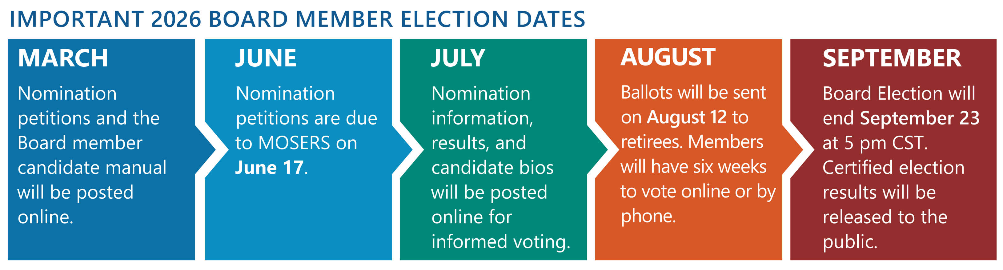 If you or someone you know is interested in running for a seat on the MOSERS Board as a representative of active or retired state employees, please see our website in March 2026 for information on the nomination process.